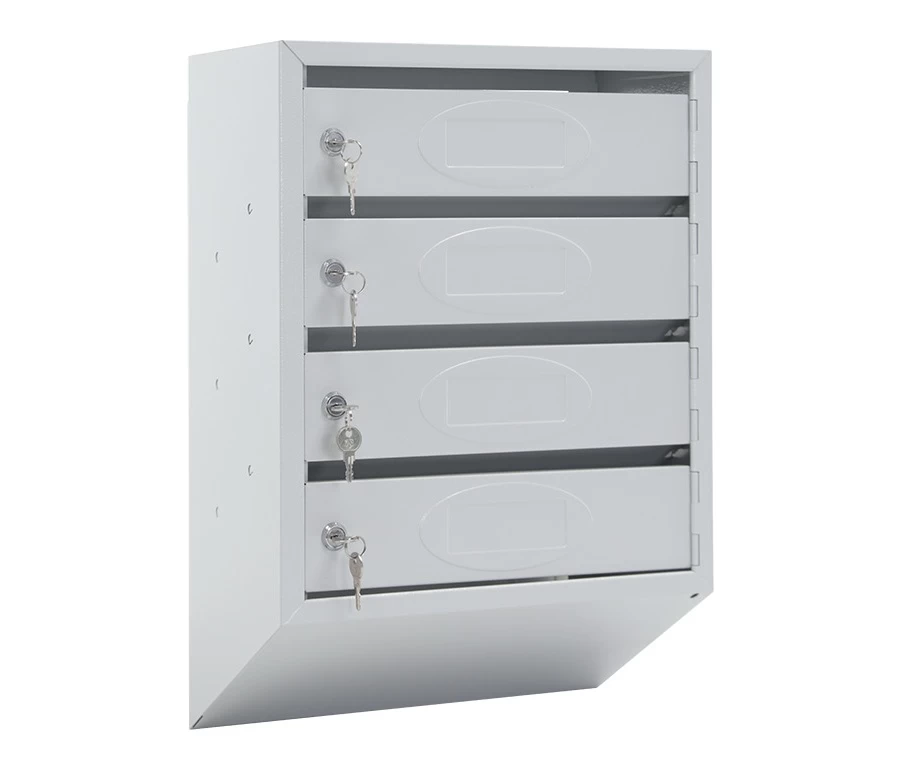 Ящик разделён на четыре секции. На дверцу каждой монтируется собственный ключевой замок, укомплектованный парой ключей.