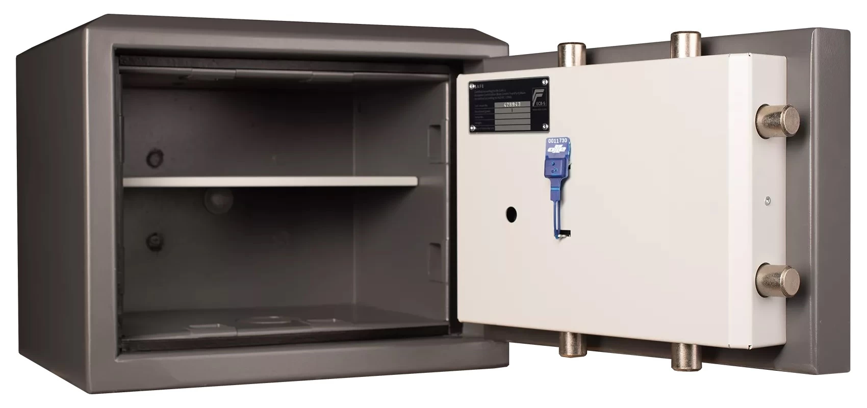 Дверь сейфа подвешена на мощных внешних петлях и распахивается на угол 180°, предоставляя владельцу полный обзор содержимого.